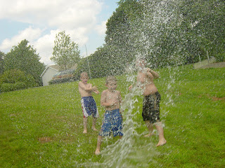 So I put out the sprinkler and they have this habit of playing on the swingset instead but that's ok this was a cool shot.